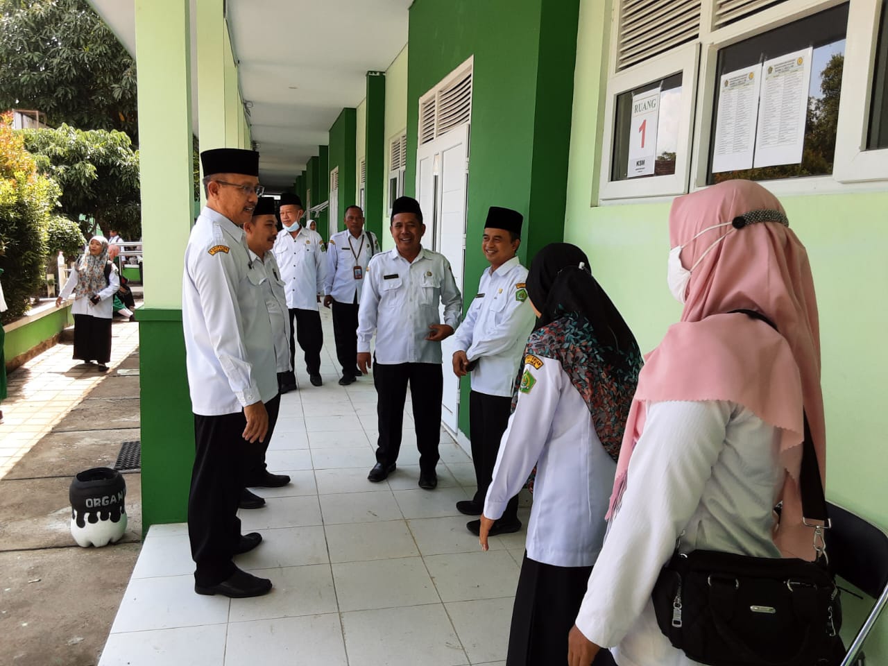 Ngawi ( Pendma ) - Kepala Kankemenag Ngawi Moh. Wahib didampingi Kasi Pendma Pujianto, Komite KSM meninjau secara langsung pelaksanaan KSM Tingkat MI yang dipusatkan di MTsN 5 Ngawi, Senin, 15 /08/2022.