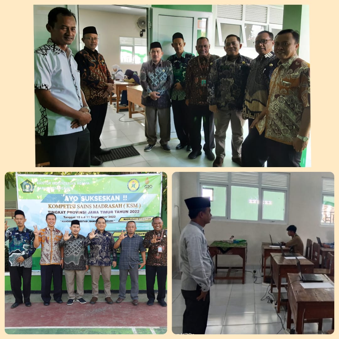 Ngawi ( Seksi Pendma ) – Kepala Kankemenag Ngawi Moh. Wahib didampingi, Pengawas Madrasah Muslih, Kepala MTsN 5 Ngawi Mustafid, Kepala MTsN 3 Ngawi Samiran, Kepala MAN 3 Masrukin meninjau secara langsung pelaksanaan KSM (Kopetisi Sains Madrasah) Tingkat Prov. Jawa Timur Tahun 2022 jenjang MA yang dilaksanakan dititik lokasi MTsN 5 Ngawi. Sabtu (10/9/2022)